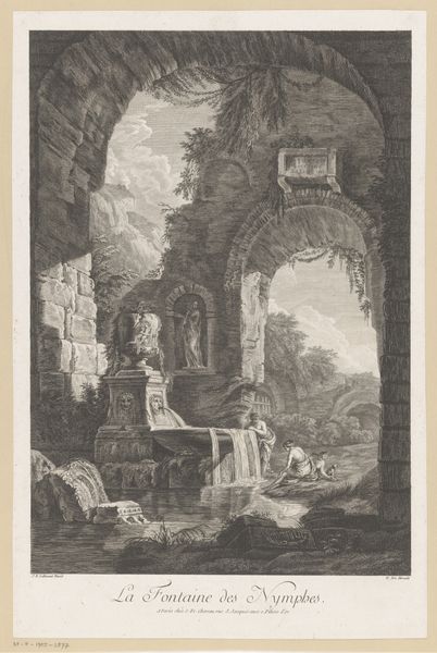 Curator: I am immediately drawn into a quiet world of echoes, as if I'm stepping into someone else’s dream of grand architectures gone silent. Editor: Indeed. What you’re responding to, I believe, is precisely what Robert Adam aimed for in this drawing from 1777. It’s titled "Architectural fantasy. Ruin of antique bridge, flanked by medieval towers". Currently residing here at the SMK, it employs pencil and charcoal to realize this vision. Curator: Fantasy is right! There’s a melancholic beauty here. The textures...you can almost feel the cool dampness of the stones and the weight of history pressing down. Even though it’s rendered with what appears to be precision, there is a softness to the ruinous towers, somehow breathing as they are dissolving. Editor: The ‘dissolving’ quality connects directly with Adam’s cultural project. Consider that he was pivotal in popularizing neoclassical architecture, critiquing what he perceived as the excesses of the baroque, particularly its associations with Catholicism. This “fantasy” allows him to showcase imagined, layered histories that circumvent these associations. He is collapsing eras into a statement about aesthetics. Curator: I get that. The ruined arches have this incredible depth, don't they? Like a stage set, inviting contemplation. I feel almost a dramatic tension as I move into it; this is far from a picturesque snapshot. There's a longing in it; a beautiful tension. Editor: The choice to depict ruins specifically also speaks volumes, doesn’t it? It’s more than just aesthetic appreciation. In the 18th century, ruins were associated with notions of lost empires and the inevitable decay of human constructs. They represented a way for viewers to meditate on time, history, and mortality – providing a tangible, ‘safe’ point to consider historical narratives, and how power shifts in human hands over generations. Curator: Well said. The decay reminds us that even the most impressive human achievements are fleeting. A vital piece of perspective. I also love that there's a little suggestion of nature creeping back, softening everything. Almost reclaiming what once was. Editor: And with that reclaiming, Robert Adam offers us a timeless reflection on power, and ultimately on ourselves. Curator: A quiet stage set where the players are always in transition.