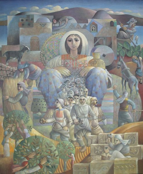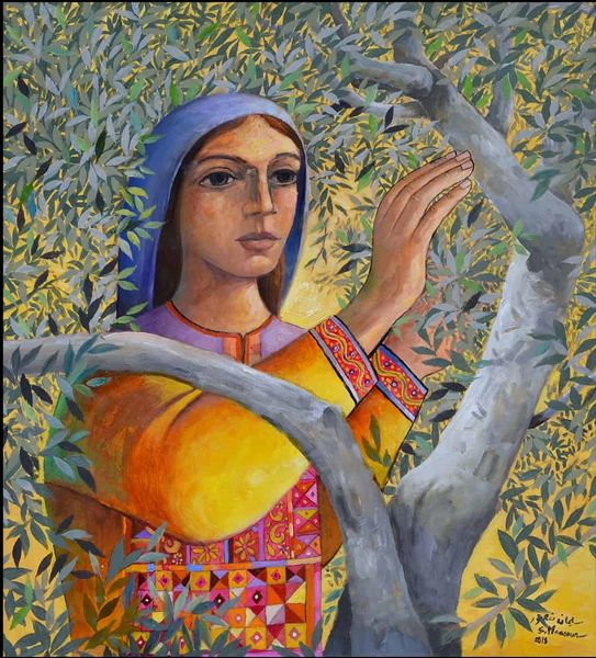 Sliman Mansour made this painting, Quiet Morning, in oil on canvas, and it's a world of muted light and constrained energy. There's this push and pull – the soft, diffused background versus the sharp, constricting barbed wire wrapped around the olive tree. The colors are gentle, almost faded, but the texture in her dress! It's a riot of intricate patterns, a celebration of culture against a backdrop of struggle. I find my eye bouncing back and forth between the details of the embroidered cloth and the harshness of the barbed wire. That small table with the coffee pot – a quiet moment amidst the chaos, a simple gesture of resistance. Mansour reminds me a little of Marlene Dumas, how she captures so much with a subdued palette and the direct gaze of her subjects. Both artists, in their own ways, deal with the weight of history and the resilience of the human spirit. The painting feels unresolved, like a question hanging in the air, inviting us to think, and feel, a bit longer.