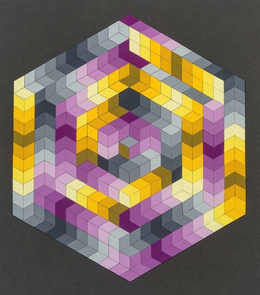 Victor Vasarely made "MERIKA" with careful geometric planes and subtle colour shifts. It's like he's built a whole world with just a few shapes, but it feels like the process is more than just mechanical. It’s like a conversation between colours. Look closely at those diamond shapes. They’re not just flat colours; each one seems to have a little gradient, giving the whole piece this wobbly, vibrating energy. The browns melt into the yellows, set against that lavender backdrop. The colour makes you feel like it's breathing. And the texture, or lack thereof, is so smooth it’s almost unreal. There’s no visible brushwork. It's as though the painting just appeared, perfectly formed. Vasarely reminds me a little bit of Bridget Riley, although her work feels more directly connected to the body, where Vasarely is floating in space. Both artists revel in art's ability to mess with your head, and to remind us that seeing is never quite believing.