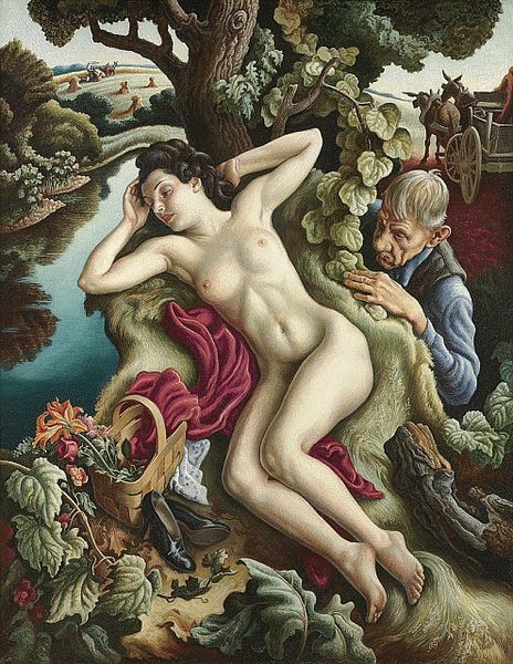 Editor: So, this is Roberto Ferri's "La Morte Della Sfinge," painted in 2015, using oil paints. It definitely evokes a baroque feel, really dramatic. It also strikes me as being about a transition, maybe an end to innocence, or something like that. What do you see in this piece, from an iconographic point of view? Curator: What leaps out is the artist’s manipulation of light and shadow, a baroque hallmark used to amplify the emotional and psychological weight of the figures. Ferri is revisiting the sphinx myth, and tapping into the enduring human struggle with knowledge and self-discovery. Do you notice how the colors and the figures echo traditional symbols? Editor: You mean like the nude figures representing purity or vulnerability? And the purple shroud representing royalty or death? Curator: Exactly. Purple often straddles the line between earthly power and spiritual transcendence. The figures’ interaction—the near-caress of the shrouded figure, the serpent writhing between the man— speaks to hidden influences shaping human destiny, or inner desires. Do you see that serpent again, and what does it do to the interpretation? Editor: It seems to be strangling the man below and being pulled by the Sphinx on top. Maybe about internal struggles and domination? It also calls to mind classical allegories, and the enduring power of those ancient narratives to address contemporary themes. Curator: Precisely. Ferri uses a historical visual language to speak to our present moment, exploring the timeless dance between knowledge and ignorance, freedom and constraint. This invites a deep engagement with the history of symbolic language, as well as psychology, which has long had an investment in deciphering meaning through mythological symbols. Editor: So it’s about the continuous cycle of seeking, understanding, and the personal consequences? That gives me a new appreciation for the power of artistic and historic symbology! Curator: Indeed! Through this continuous interaction of historical themes, it underscores the continuity of human experience.