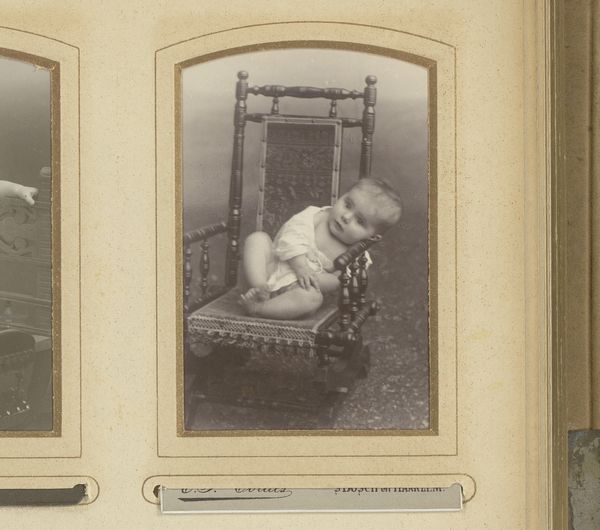 Editor: This is "A Little Scene" by Sophus Williams, and it looks like a photograph. I’m struck by its sepia tones and how they create this sense of looking into the past. What do you see in this piece? Curator: The composition is meticulously arranged, wouldn't you agree? Note the interplay between the figures and the geometric forms of the table and picture frame. It's the orchestration of light and shadow, not merely the depiction of a domestic scene, that compels attention. Editor: So, you're saying it's more about how the photo is put together, rather than just what it shows? Curator: Precisely. The formal elements elevate it. The tonal range, the balance of shapes...it's a sophisticated visual exercise. It allows us to consider photography itself as a constructed image, not simply a recording. Editor: That makes me look at the photograph in a totally different way! I hadn't considered the image as a construction of shapes and tonal values.