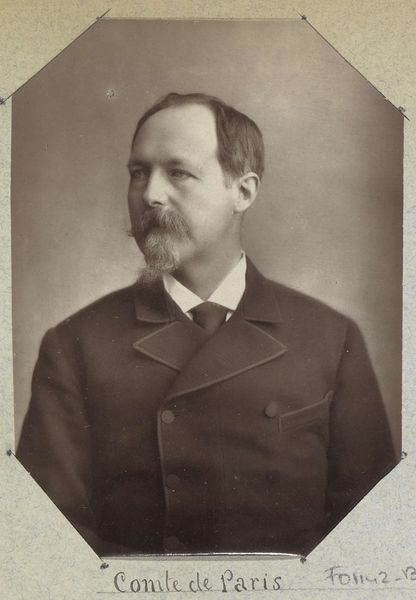 Curator: The work before us is a photographic portrait, simply titled, "Portret van een onbekende man," created sometime between 1880 and 1887 by Albert Greiner. It’s held here at the Rijksmuseum. Editor: It has a wistful mood. Something about the sepia tones gives it a distant, almost dreamlike quality. You can almost hear the echo of forgotten stories. Curator: Yes, and the photographic technique plays a significant role here. Note the limited tonal range, focusing our attention on the textures, the man’s neatly groomed beard, the fabric of his jacket. It reduces everything to the essence of form. Editor: You see form; I see a soul wrestling with…well, I don't know. Turn-of-the-century ennui? He just looks like he has stories to tell and the silence is killing him. Curator: Or perhaps the silence allows us, the viewers, to create those stories. Photography in this era often used such stark compositions precisely to offer a space for projection. The subject is relatively centered, posed with intention...but is this an official state portrait? Personal commemoration? A gift to someone? Its rigid simplicity amplifies these questions. Editor: I suppose. Though, even without knowing, one feels as if you *almost* know him. That slightly weary look. Haven't we all been there? Perhaps this “unknown man” is, in some ways, everyman. A man facing history, unsure, yet composed. Curator: Well, now I might concede that point to you. His suit and tie hint at societal position. I do not think this portrait seeks to showcase some wealthy merchant’s influence but rather an archetype of citizenry… perhaps one experiencing unprecedented global societal transition with dignity. Editor: Nicely said. Maybe that sepia filter wasn't just a technique then; maybe it’s a time capsule reminding us we're all unknown men, struggling in different costumes and eras. Curator: And for me it reinforces photography's capability to create archetypes of timeless appeal through masterful composition. Editor: Maybe art isn’t always about clear answers, sometimes it’s about that satisfying "almost," that shimmering echo.