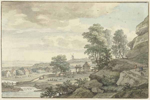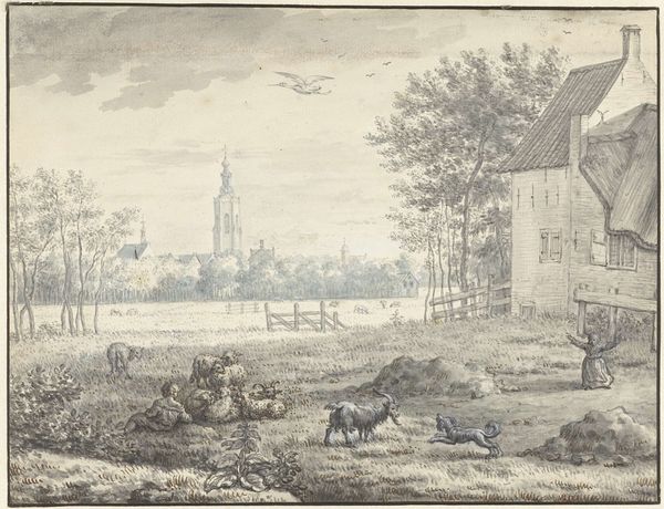 Aert Schouman captured the village of Terheijden in this watercolor and gouache work. Dominating the composition is the church, a symbol central to community identity and spiritual life in the 18th-century Netherlands. Churches, as architectural symbols, echo across history. Think of the Hagia Sophia, once a church, then a mosque, now a museum: it embodies a continuous cycle of cultural and religious transformation. Similarly, the village church here has layers of meaning. Its presence evokes a collective memory, a shared history rooted in faith and communal bonds. The church, as a cultural symbol, can be compared to ancient temples. Each represents a sacred space, a focal point for communal identity. This symbolism is not linear; it resurfaces, evolves, and takes on new meanings in different historical contexts, always reflecting the society's deepest beliefs and aspirations.