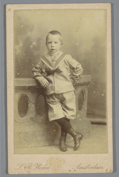 This is a photograph of an unknown boy by Lodewijk Hendrikus Serré. Notice the boy’s posture, leaning casually on the table. It's a pose we see echoed through the ages, from classical sculptures to modern portraits, each time conveying a sense of ease, yet also asserting a certain status. Consider how this simple gesture has been imbued with layers of meaning over time. But it is the table itself that I find more intriguing: a symbol of domesticity, stability, and perhaps even hidden secrets. In countless paintings across history, tables serve as focal points, laden with symbolic objects. Here, it is bare, suggesting a stark contrast to the boy’s own youth and potential. It speaks to a deeper human desire to create order and meaning in a world that often feels chaotic. It’s a poignant, enduring motif of innocence juxtaposed with the weight of the world.