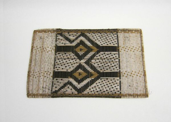 Editor: Here we have "Clan Emblem," a fiber art weaving of unknown date by the Mbole people, residing here at the Minneapolis Institute of Art. It’s quite striking, with these bold geometric patterns. I’m curious about what role something like this would play within the community. What do you see in this piece? Curator: This piece speaks volumes about identity and social structure. Consider that clan emblems like these weren't simply decorative. For the Mbole people, they were deeply intertwined with social cohesion, carrying the weight of lineage and belonging. How do you think this abstraction serves that purpose? Editor: I suppose the geometric pattern makes it readable at a distance, a clear signifier even if you don't know the exact family history behind it. The act of weaving itself feels symbolic too. Curator: Exactly! Weaving in many cultures, and certainly within the Mbole tradition, represents the interconnectedness of people and the deliberate construction of society. This isn't just about aesthetics; it's about materializing identity. And what does it mean when that identity is performed, displayed through visual culture? Consider the potential disruption, and resistance, such powerful symbols could incite, or prevent, within the social framework. Editor: That’s fascinating. I hadn’t considered how actively this could be used, it helps me realize the true potential of design! Curator: These pieces are tangible embodiments of intangible connections between people, nature and history. Reflecting on how art can reinforce – or challenge – our understanding of community, memory, and belonging.