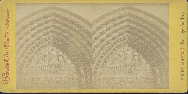 Editor: Here we have a photographic print titled "Throne," dating from between 1875 and 1899, housed at The Art Institute of Chicago and attributed to Deposé. It features a classical looking throne or canopy, surrounded by what looks like Greek statues. I'm really struck by how it positions power through these clear historical references, making it appear like the ultimate authority! How would you interpret this work in its historical context? Curator: That's a keen observation! We must consider the late 19th century’s fascination with historical reenactment and its social functions. Photography like this circulated widely; stereoscopic cards were a common form of home entertainment. Think about what's being represented: a throne. It signifies power and authority. The composition with the Greek statues flanking it intentionally evokes classical ideals, linking contemporary aspirations of power back to what was considered a golden age. Who was this "throne" for, what statement does this space and set design make? Editor: It's interesting to consider this not just as a picture but also as a widely circulated commodity for home viewing. Could this image be shaping how people understood or even aspired to certain forms of social power and taste through the rise of photography and mass media? Curator: Precisely. The photographic reproduction democratizes access to symbols of power, albeit in a mediated form. It inserts this kind of imagery into domestic spaces. Consider the role museums played then in shaping public taste and national identity, often presenting grand narratives of history. Perhaps this stereograph is connected to a display inside a museum at the time. Think about the act of looking and the viewer's own place within that imagined history of power, even as it might have excluded them! Editor: So it is possible it functioned not just to display a historic object but also to communicate values or social hierarchy? This makes me see this object so differently than if it was merely art for art's sake! Curator: Indeed! The circulation of these images served a performative function in reaffirming social structures and making history more palatable and available to the masses. The visual language matters. Reflect on the public role of this image and photography. Editor: I will. It really puts this photograph into a wider, meaningful context of history and social influence. Thanks so much!