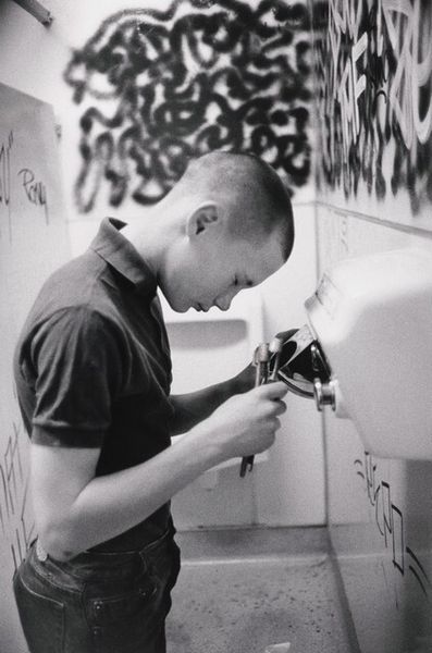 Leo Rubinfien made this gelatin silver print, New York, 2003, at Canal Street and Broadway. The silvery quality of the print really makes you think about the process, the darkroom and the developing of the image; this isn’t about a quick snap! The contrast is beautiful, but it’s the composition that gets me. Our guy is off-center, almost pushed to the side, as if he’s emerging from the architecture itself. The texture of the concrete next to him is so rough and pitted, compared to his smooth skin. Light catches his face, especially his eyes, so you're drawn to him, even though he isn’t filling the frame. This photograph reminds me of some of the gritty street photography of the 1940s. Rubinfien makes me think of Lisette Model with his bold and direct approach. It’s about seeing, and really looking, at the world around you, finding beauty in the everyday. And, like all good art, it asks more questions than it answers.