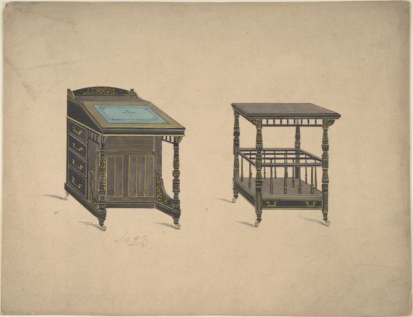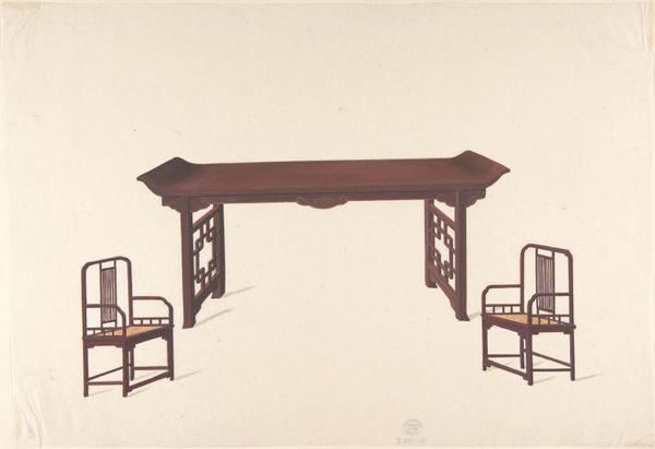 This anonymous design for export furniture was created with ink and color on paper. The drawing shows an elegant chair and small table placed on a platform, likely intended for an affluent Western consumer. The designs are based on traditional Chinese forms, but simplified for easier, cheaper production, and appeal to foreign tastes. Consider the labor required to produce such a piece: the felling of trees, milling of lumber, intricate carving and joinery, finishing, and transportation. Each step relies on skilled hands, but also reflects broader economic forces. Export wares like this represent a complex negotiation between cultural exchange, aesthetic adaptation, and the demands of global capitalism. Looking closely at the design, we can appreciate how the inherent qualities of wood – its grain, density, and capacity for intricate carving – are highlighted, speaking to the traditions of craftsmanship and the global marketplace it occupied. By considering the making and the material, we can gain insight into the intertwined histories of art, craft, and commerce.