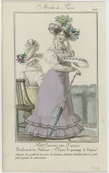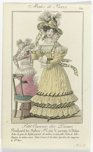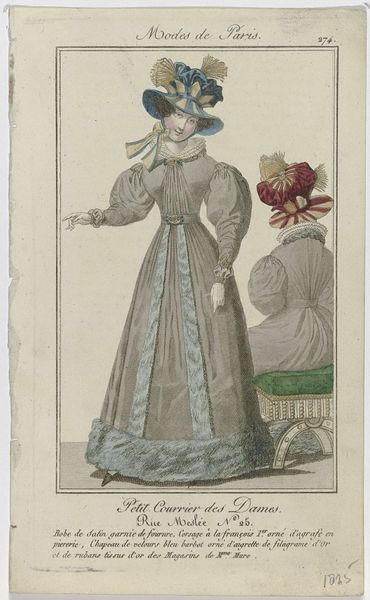 This fashion plate was made in Paris in 1823. The image shows a woman being fitted with a "Redingotte de gros de Tours," which was a type of overcoat made from heavy silk. Fashion plates like this one were produced to circulate ideas about style among affluent women. They show us the importance of visual media in shaping consumer culture and social status. This plate comes from the journal "Petit Courrier des Dames," which was one of many publications that helped to establish Paris as a center of fashion in the 19th century. Note that the plate identifies the street address of the journal, suggesting that readers might visit the offices for further information about the latest styles. As an art historian, I'd want to explore how the journal was produced, who its target audience was, and how it contributed to the construction of gender and class identities in early 19th-century France. Examining these questions helps us to understand art as embedded in wider social and institutional structures.
