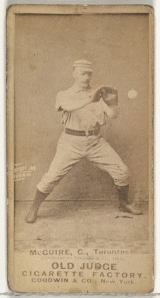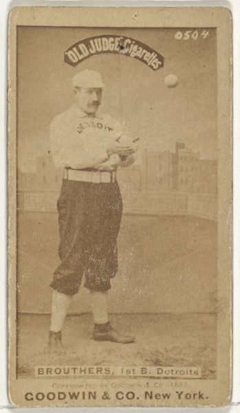 This card, featuring Clarkson the pitcher, was printed by Goodwin & Company of New York, around 1887, as part of a series inserted in packages of Old Judge Cigarettes. The card is a photograph, mounted on card stock. This technique allowed the company to mass-produce them cheaply, and the sepia tone gives it an antique look, fitting for a product like tobacco. While photography was regarded by some as an art, its use here as a promotional item firmly places it in the world of commercial ephemera. These cards were produced on a massive scale, churning out collectibles as a means to sell cigarettes. Consider the labor involved, from the tobacco fields to the darkrooms to the printing presses. It really makes you wonder about the relationship between leisure, labor, and the things we consume. It challenges our notions of fine art by pointing to the complex social and economic forces behind the creation of even the simplest image.