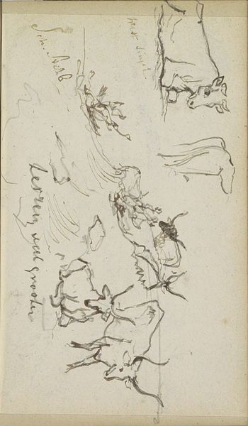 Jacob de Wit created this study sheet with human figures using pen and brown ink. The composition is a dynamic arrangement of multiple figures scattered across the page. De Wit masterfully uses line to define the forms, creating a sense of movement and energy. The figures are rendered with loose, gestural strokes, giving them a sense of immediacy and vitality. The absence of color directs our attention to the pure form and structure of the figures. De Wit focuses on capturing the essence of the human form in various poses. This emphasis on line and form aligns with the formalist pursuit of understanding art through its intrinsic visual elements. The varying line weights and densities create a visual rhythm across the sheet. This rhythm engages with the interplay between representation and abstraction, echoing the artist's study of classical forms. These forms, while representational, tend toward the abstract, inviting ongoing interpretation.
