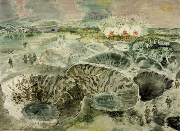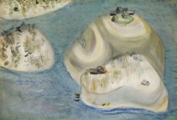 Martiros Sarian made "By the River" using watercolor on paper, a popular medium amongst landscape artists. The magic of watercolor lies in its fluid nature, and Sarian coaxes the paint across the surface, allowing it to bloom and mingle. Observe how the paper’s texture subtly influences the flow of the paint, creating soft, blurred edges that lend the scene an ethereal quality. The washes of color evoke the sensation of a sun-drenched afternoon. Watercolor has a democratic appeal, being readily accessible and relatively inexpensive, yet it requires considerable skill to master. Sarian's art stands as a testament to the expressive potential of such materials. It blurs conventional boundaries between fine art and craft, by elevating everyday materials through the artist's vision.