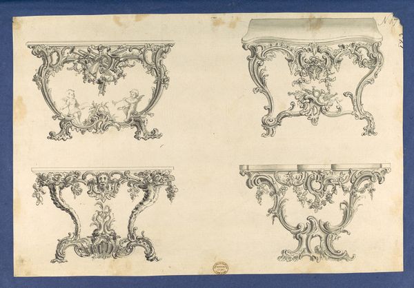 This drawing titled 'Brackets for Marble Slabs' was created by Thomas Chippendale in the 18th century, using pen and ink on paper. The drawing is divided into three distinct bracket designs, each presenting a unique formal approach. On the left, a geometric pattern contrasts sharply with the ornate, curvilinear forms of the two brackets on the right. The linear precision and structured arrangement of the geometric bracket evoke a sense of rational order. In contrast, the other brackets with their flowing lines and elaborate embellishments, suggest a more ornamental aesthetic. This contrast isn’t just about style. It reflects the period’s exploration of different aesthetic and philosophical approaches to design. The drawing uses a semiotic system where geometric shapes can be interpreted as signs of modernity, while naturalistic motifs evoke tradition. Ultimately, Chippendale's drawing encourages us to consider the function of art as both a reflection and a negotiation of cultural values.