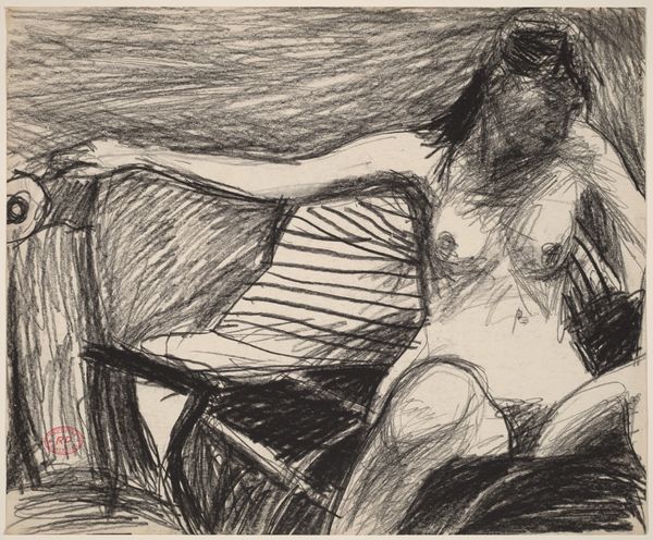 Richard Diebenkorn made this drawing of a reclining nude with charcoal on paper. It's all about the process; you can almost feel the artist's hand moving across the page, building up the form with layers of dark, scribbly lines. I’m really drawn to the way Diebenkorn uses charcoal to create a sense of volume and depth. The lines are so raw and immediate, you can see the pressure he applied, the way he built up the shadows to give the figure weight. Look at the figure's face, see how the charcoal is smudged and blurred, creating this mysterious, almost ghostly effect. It reminds me of some of De Kooning’s drawings. Diebenkorn's focus on process and mark-making, his willingness to let the medium guide his hand, opens up a space of possibility and invites us to engage with the work on a deeply personal level.