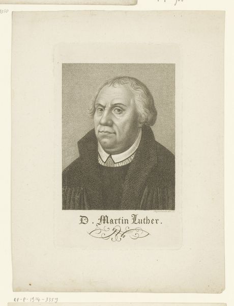 Curator: Friedrich Wilhelm Nettling created this engraving of Martin Luther sometime between 1793 and 1824, rendered in the Neoclassical and Romantic styles that were dominant at the time. Editor: It has a solemn weight to it, doesn’t it? Luther's gaze is unwavering, and you get the sense of his gravity through Nettling's commitment to detail—down to the etching of the parchment and rendering of Luther's cloak. Curator: The printing techniques of the era had become quite advanced; consider that this image would have been reproduced and distributed widely, playing a key role in shaping Luther's public persona during that period. Think of it in the context of shifting socio-political dynamics in Europe and the reverberations of the Reformation. Editor: Exactly! And what's striking is how even within the aesthetic constraints of Neoclassicism and Romanticism, a certain rebellious spirit bleeds through. Look at his face, etched with determination, conveying a subtle defiance that connects directly to Luther's revolutionary act of challenging the Catholic Church. Curator: His presence also intersects with contemporary theory on historical representation. Engravings like these actively constructed and solidified Luther as a symbol, particularly within the emerging national identities of the time. Editor: Agreed, this image became part of a larger visual rhetoric. It wasn't simply a portrait; it was a visual argument for reform. Nettling places Luther within a tradition of leadership, using the stylistic tools available to give him a sense of timelessness and authority. And in this light we could look into Nettling's life as an artist: what led him to pick Luther as a subject? Curator: Right. To fully appreciate Nettling's "Portret van Martin Luther," it’s essential to acknowledge not just the artistry but also the ideological framework that underpinned its creation. The politics of imagery are ever present. Editor: Absolutely. This portrait acts as a powerful reminder of the enduring dialogue between art, identity, and political change.