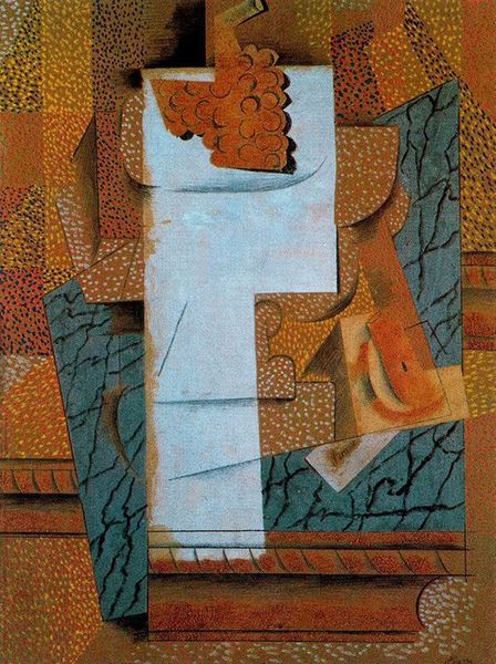 Editor: Here we have Zdzislaw Beksinski's "Untitled" piece from 1958, rendered in oil paint. It’s…intense, isn’t it? Almost overwhelming with its bold colors and this strange, imposing figure. What do you see in this work? Curator: It’s a fascinating tapestry of anxieties and archetypes. Notice how Beksinski, even in abstraction, evokes a sense of cultural memory. Do you see the hints of a tribal mask, perhaps? Editor: I hadn’t really thought of it like that! More like some futuristic…android? Curator: The power of the symbol is its adaptability. The grid-like structure superimposed on the figure hints at societal control, maybe the rigid structures of the post-war era. The colors too contribute – that yellow could represent a fading sun, a dying order? Editor: That’s really insightful. It feels like you're seeing a whole world of historical trauma in what I just saw as…a scary face. Curator: Scary yes, but that primal fear can connect us to universal experiences, doesn't it? Beksinski’s genius lies in making the intensely personal – his own anxieties and dreams, perhaps – universally resonant through these haunting symbols. He opens the viewer to repressed emotion and invites conversation about its causes. Editor: It’s definitely giving me a lot to think about. I'll never look at a Beksinski painting the same way again. Curator: And that's the enduring power of art, isn't it? To reveal layers within us, inviting us to confront and integrate.