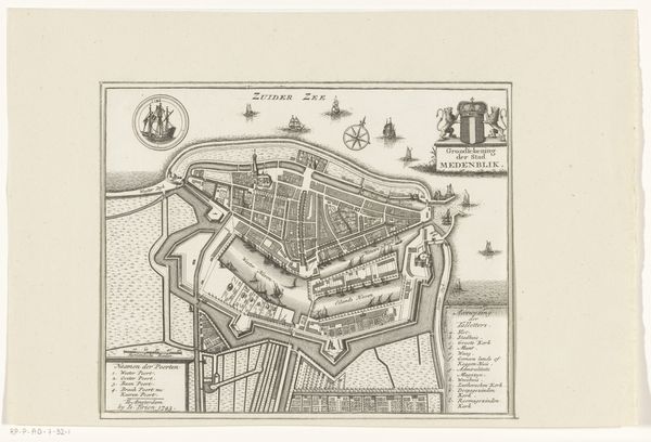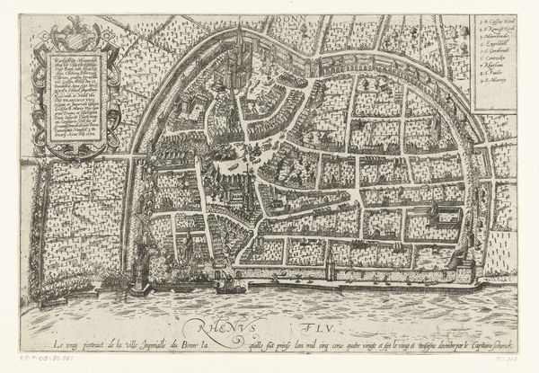 Curator: The crisp, almost clinical quality of the engraving in Giovanni Battista Falda's 1676 "Plattegrond van de stad Rome" is striking. Look at the precision in each line, the clear delineation of space. What's your initial read? Editor: An almost dizzying array of detail; it evokes both a sense of vastness and the methodical labor required to produce it. It feels imposing, like an architect's precise vision asserting order over chaotic urban growth. Curator: It is indeed an imposing feat, particularly considering its production. This engraving would have demanded the skillful labor of craftsmen—from Falda himself designing and etching the plate, to the papermakers providing the ground for his work, and the printing presses that multiplied and circulated the image. This piece is a confluence of numerous hands. Editor: Precisely. Observe how the urban sprawl is dissected by the river, dividing not just space but perhaps society as well. There’s a certain geometric formalism evident in the buildings themselves—notice the use of sharp angles. What about its structure speaks to you? Curator: Considering the patronage systems in place at the time, it is not surprising that we might read Falda’s piece as a promotional document; a tool used to showcase Rome, enticing investment and tourism, both integral to the economic lifeblood of the city. We mustn't divorce this object from the world that fostered it, no matter how striking it might be as an image. Editor: I find it quite intriguing how Falda achieves such a sense of depth using only lines, how he transforms a flat plane into a seemingly boundless space, playing with perspective and intricate detail to simulate spatial recession. The sheer level of mastery in controlling the medium is worth celebrating. Curator: A worthwhile point indeed. By understanding who commissioned these kinds of urban 'portraits' and for what purpose, we begin to unlock how the mechanics of power played into what images gained cultural relevance. Editor: It truly showcases the power of line and form to both document and, perhaps, even subtly idealize its subject. It has provided new insight to consider its detailed and well-crafted composition further. Curator: Yes, let's both acknowledge the labor involved in creation while remaining ever critical towards its social life, just one possibility in thinking about an object from the Italian Renaissance.