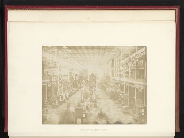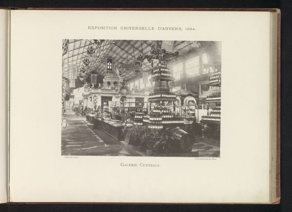 This photograph captures the interior of a festival hall in Antwerp, and was taken in 1894 by Th. Lantin. The photograph speaks to the rapid industrialization during that time, with the building's infrastructure comprised of iron and glass, materials emblematic of modernity. The scale of this building suggests a society capable of massive construction projects, ones dependent on complex systems of resource extraction, factory production, and labor. Looking closely, you can see repetitive patterns in the ironwork and glass roof, showing how industrial processes could generate architectural forms. The image also conveys a sense of social space. The hall is arranged to accommodate a large number of people, reflecting the growing importance of public events and mass gatherings in the late 19th century. By examining the materials and the making of this space, we gain insight into the cultural, and industrial forces that shaped this historical moment.