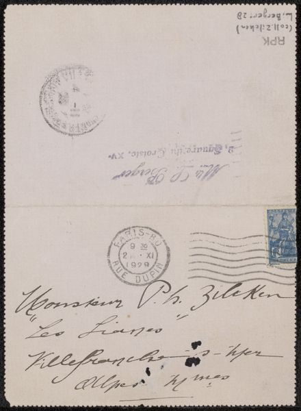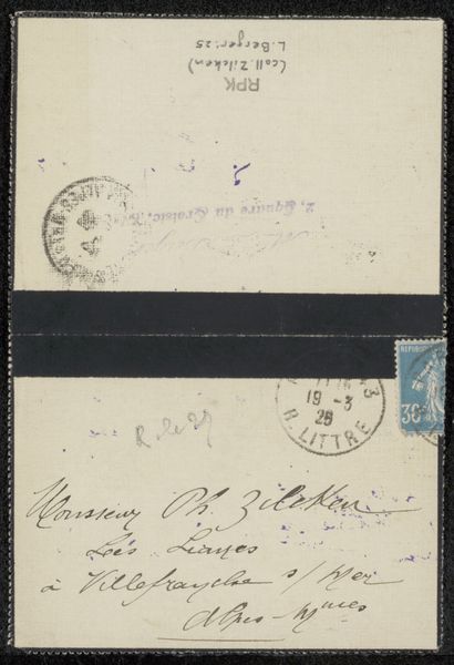 This is a letter to Philip Zilcken by Lya Berger, its paper aged and the ink faded with time. Berger was a Dutch artist who tragically died in the Sobibor extermination camp in 1941. This letter offers a personal connection to her life, predating the horrors of the Holocaust. The stationary is addressed from Nice, France. The handwriting, elegant yet hurried, speaks to the intimacy and urgency of correspondence in a pre-digital age. As a woman artist in the early 20th century, Berger faced systemic barriers in a male-dominated art world, and as a Jewish woman, she ultimately faced the unimaginable atrocities of the Nazi regime. Letters like these humanize the victims of the Holocaust, reminding us that behind the statistics were individuals with lives, relationships, and stories. The emotional weight of this simple piece of mail is a poignant reminder of a life interrupted by hatred and violence, but also of the enduring power of human connection.
