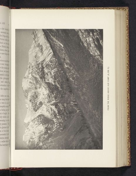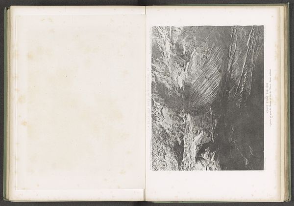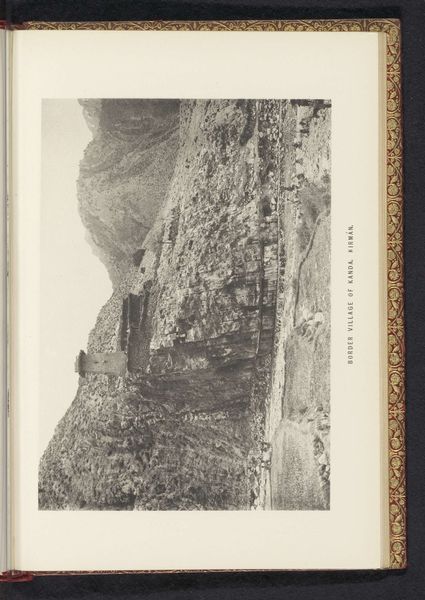 Editor: Here we have "The Sainj River at Larji," a photograph taken by Frederick Saint John Gore before 1895. It’s an albumen print, quite striking in its starkness. What grabs me is the way the bridge bisects the composition; it feels like a deliberate severing of the natural landscape. How do you interpret this work? Curator: The division you observe is key. Consider the linear progression: the bridge isn't simply bisecting, but acts as a strong diagonal, driving the viewer's eye deep into the pictorial space. Note how the tones themselves articulate depth—from the textured foreground, leading us towards that brighter area where river meets sky. This carefully managed light contributes a feeling of monumentality; have you considered that it's structured much like a traditional history painting? Editor: A history painting? That’s interesting, considering it’s a landscape. I was so focused on the contrast between the natural and man-made elements. The way the jagged rocks jut against the smooth water also strikes me. Curator: Precisely. But is it merely contrast? Look at the bridge construction, a kind of cage against this backdrop, these stark planes and geometrical shapes create a fascinating sense of enclosure amid immensity, where our perception is guided along rigorous spatial dimensions. Do you see any symbolism that is built into this spatial structure? Editor: I see your point. The bridge, as a man-made element, does draw your eye, pushing beyond to what could have been solely a beautiful natural landscape shot. I suppose it emphasizes humanity's intrusion into, or maybe navigation of, the natural world. Curator: Indeed. And thinking formally, we see that by emphasizing planes and lines in stark relief, the piece encourages reflection on more than the represented content. This invites inquiries into representation and, perhaps, our complex interactions with such landscapes. Editor: That completely reframes my understanding of the photo. Focusing on those intrinsic design elements really opened it up for me. Curator: Yes, paying close attention to these arrangements offers access into many perspectives!