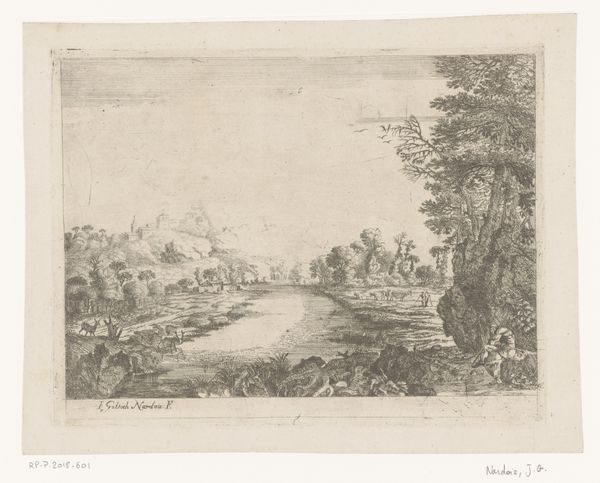 Editor: Here we have Cornelis Elandts's "Gezicht op Kasteel de Binckhorst te Den Haag," dating from 1681 to 1728. It's a fascinating cityscape rendered as a print. I’m really struck by the detail achieved through engraving. What stands out to you about this piece? Curator: It's the printmaking process itself that intrigues me. Consider the labor involved in producing this image: the craftsman meticulously etching lines onto a metal plate. Each mark reflects not only artistic skill but also a socio-economic reality. It shows that creating art wasn’t just the job of high skilled workers, but that a big portion of it was craftsmanship. How might the act of reproducing images like this have impacted artistic value at the time? Editor: That's interesting. I hadn't considered the repetitive labor, and it changes how I view this. You’re suggesting the process is as significant as the aesthetic. Were these prints widely distributed, therefore shaping perception and ideas beyond elite circles? Curator: Precisely. The medium’s inherent reproducibility challenges our romantic notions of the unique art object. And beyond that, think of the materials themselves – the inks, the paper. Where did they come from? Who produced them? Consumption is also a crucial aspect of it, how many of those prints were bought, by whom and why. It’s a window into a whole network of material production and exchange. Does it give you a different perspective? Editor: It certainly does. Thinking about the print as a product of labour and material, rather than just artistic expression, reveals so much about its historical context. It is quite insightful. Curator: Indeed, focusing on materiality allows us to unpack complex historical, economic, and social factors embedded within the image. I find the social context to be highly informative to analyse art. Editor: Thanks, this conversation has deepened my understanding. It makes me think about art and craftsmanship very differently now.