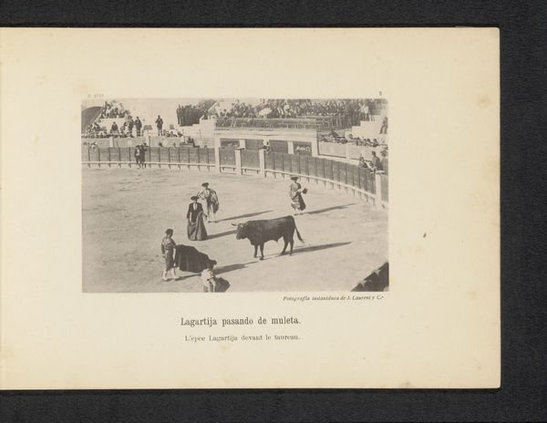 Editor: This photograph, taken by Frances Benjamin Johnston, is titled "Studying the Cow," and it seems to depict a scene at the Hampton Normal and Agricultural Institute. I’m struck by the composition - a group of students intently observing a cow. What historical narratives do you see at play here? Curator: It's crucial to consider the context. The Hampton Institute aimed to assimilate Black Americans through industrial and agricultural training. The photograph stages a vision of Black students learning practical skills. But this image participates in the problematic narrative of "uplift," suggesting that Black people needed to be taught basic skills to be considered equal, and it ignores existing knowledge systems. How do you interpret the power dynamics visualized in this scene? Editor: It is unsettling to consider the ways the photograph promoted harmful stereotypes of progress and assimilation. Curator: Exactly. It is a reminder of the complex and often contradictory role art plays in shaping social perceptions.