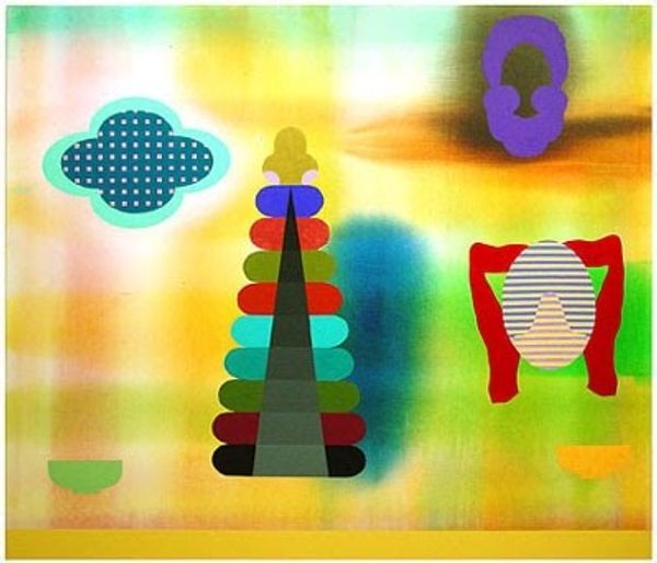 Curator: Roy Lichtenstein’s "Reflections on Brushstrokes," part of the Tate Collections, strikes me as a playful yet critical commentary on Abstract Expressionism. Editor: It's immediately striking—almost aggressively cheerful, considering it's dissecting such loaded symbols of artistic expression. Curator: Precisely. Lichtenstein employs his signature Ben-Day dots and bold colors to deconstruct the spontaneous gesture, turning it into a calculated graphic. Editor: The brushstrokes, usually icons of emotional outpouring, are rendered flat, almost cartoonish. Are we meant to see them as hollow, or as newly powerful symbols? Curator: Perhaps both. He captures the irony of iconic gestures becoming clichés. Yet, by re-presenting them, Lichtenstein elevates them to a new plane of significance. Editor: So, he’s not dismissing expressionism, but reflecting on how its visual vocabulary has permeated our culture, shifting its meaning. It’s a compelling idea.