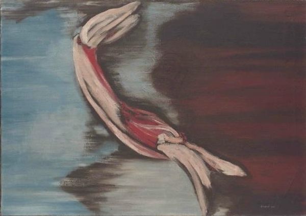 Jindrich Styrsky made this painting, Olšany, and it looks like he was really exploring what happens when you let forms emerge, almost like a dream. He’s got these blurry blocks of color, greens and blues, kind of washed out like a memory. Then bam! This dark, brooding shape hovers above, with a slash of aggressive red and a shadow that grounds it but also makes it feel totally untethered. It’s like the painting is a stage and these shapes are actors who don't know the script. The texture is what gets me, though. It's not about hiding the brushstrokes, it's all right there, visible and raw. The layering of color, like thin curtains, allows the painting to build on itself. I'm reminded of Yves Tanguy's biomorphic forms or maybe even some of those early Surrealist experiments with automatism. Ultimately it feels fresh because it embraces the not-knowing.