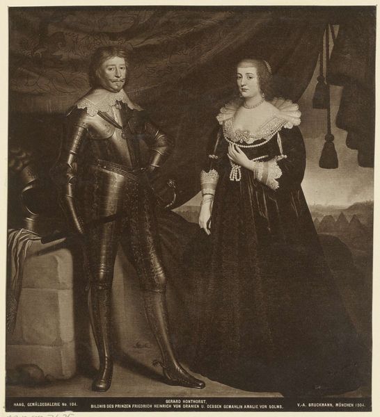 This undated portrait at the Rijksmuseum depicts Willem II, Prince of Orange, and his wife, Maria Henrietta Stuart. Its anonymous authorship speaks to a broader trend in 17th-century Dutch art, where the market demand drove production and sometimes overshadowed individual artistic recognition. The image creates meaning through visual codes typical of aristocratic portraiture. Willem, in his armor, holds a commanding pose that conveys authority and military strength, vital in the Dutch Republic's ongoing struggles for independence. Maria Henrietta, daughter of Charles I of England, stands demurely in a light-colored gown, symbolizing purity and nobility. The cherubic figures above suggest divine approval of their union. The Netherlands at this time was a republic, yet portraits like these reinforced the power and lineage of the House of Orange, a family of immense political significance. By studying archival records, letters, and period writings, we can better understand the social and political dynamics that shaped the production and reception of this portrait, revealing the complex interplay between art, power, and identity in the Dutch Golden Age.