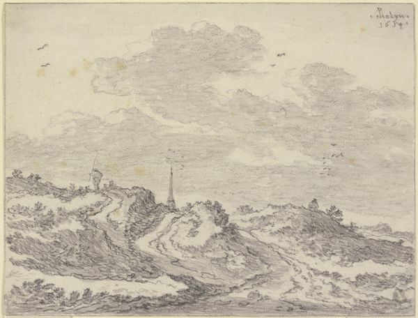 Editor: So, this is *Der Rheinfall bei Schaffhausen*, circa 1780, by Franz Schütz. It's an engraving in red chalk and pencil, showing the Rhine Falls. It strikes me as quite a moody, almost romantic depiction of nature. What do you see in this piece? Curator: I'm drawn to the materials and the production process here. Notice the red chalk, the pencil, the engraving. This isn’t just a depiction of the falls; it’s a record of labour. The artist, and perhaps assistants, carefully translated the scene through specific material choices. Editor: That's interesting. I hadn’t thought about it that way. The red chalk gives it such a soft, almost dreamlike quality. Was there a particular reason for choosing these specific materials? Curator: Exactly! Think about what those materials *meant* in the late 18th century. Chalk and pencil, relatively accessible and easily transported, were essential for preliminary studies and landscape sketching *en plein air*, fitting the culture of scientific investigation and picturesque tourism. How readily were prints like this consumed and distributed? That's also part of the story. Editor: So, you’re saying that the print wasn’t just art; it was also a commodity in a way? Like, part of a system? Curator: Precisely! Consider who was buying these prints. Were they purchased by landowners, wealthy tourists on their "Grand Tour," or artisans seeking to reproduce them? Also, think about what skills the artist brought to this process. Editor: That reframes everything! I was focused on the aesthetic, but seeing it as a product of material conditions and labor... It makes it much more complex. Curator: It is an engagement, through materials and means, of nature. Focusing on the human imprint. Now, when you look again, what is different for you? Editor: I see now a negotiation between artistic expression and commercial imperatives of that era. It connects art, materials, culture, labor, and economics – all things to consider more deeply. Curator: Exactly. These elements often transcend boundaries, redefining them as dynamic rather than absolute distinctions.
