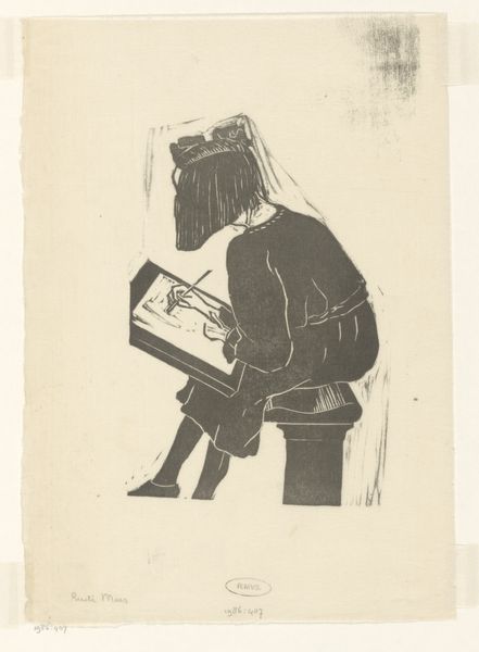 Editor: So, this is Louise Bourgeois’s "I Just Died at Birth" from 2010, made using ink and pen. I find the figure so striking, almost like a ghostly echo. What can you tell me about it from a formalist approach? Art Historian: The initial impact is indeed derived from the starkness of the line work against the void of the paper. Notice how Bourgeois uses the continuous line to suggest the form of the body, pregnant perhaps, but simultaneously creating a sense of incompleteness. How does the script within the lines influence your reading of the image? Editor: Well, the handwritten words seem to fill the interior of the figure, like it’s carrying this heavy stream of consciousness. It feels like the text is integral to the shape itself. Art Historian: Precisely. Consider how the varying pressure and density of the lines create visual weight and rhythm. The text acts as both a textural element and a semantic carrier. How does the textual element function as line in a purely visual sense? Editor: The cramped handwriting obscures clear shapes; the figure itself becomes the composition. So even without reading the text, one is forced to consider the overall aesthetic impact, and what shapes appear because of the density. It really puts an emphasis on the emotional qualities communicated purely through composition. Art Historian: It also prompts one to appreciate Bourgeois' command of line. Look at the stark quality against negative space and how well the artist captures feeling using abstraction. Do you agree that it’s abstraction, not pure representation, at work here? Editor: Yes, definitely. Focusing on those pure elements makes it feel less about a literal body, and more about the emotional space that body occupies. Art Historian: A pertinent observation. Through an awareness of her technique, one gains access to appreciating her work and her vision on a deeper level.
