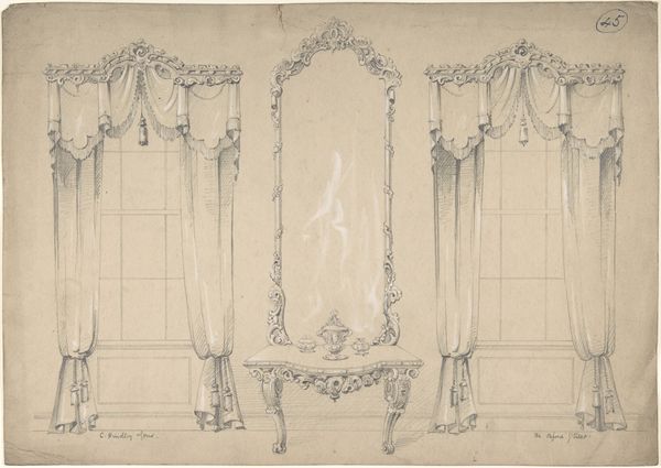 Simon-Claude Constant-Dufeux rendered this watercolor and graphite sketch, Interior of a Small Salon, sometime in the mid-19th century. It offers us a glimpse into the world of Parisian interior design, but also the social aspirations of the bourgeoisie in France. The architectural symmetry and ornamentation speak to the cultural elite. This salon, likely commissioned by a wealthy client, reflects a desire for refined taste and social status. The lavish use of gold trim, plush fabrics, and delicate furniture showcases the owner's economic power. This carefully designed interior becomes a stage for social interactions, where appearances matter and taste is a form of currency. Was this a conservative or progressive statement for the time? Perhaps, as it attempts to democratize a lifestyle previously reserved for the aristocracy. To fully understand the significance of Constant-Dufeux's sketch, one can delve into the archives of design history, social commentaries, and economic records from 19th-century France.