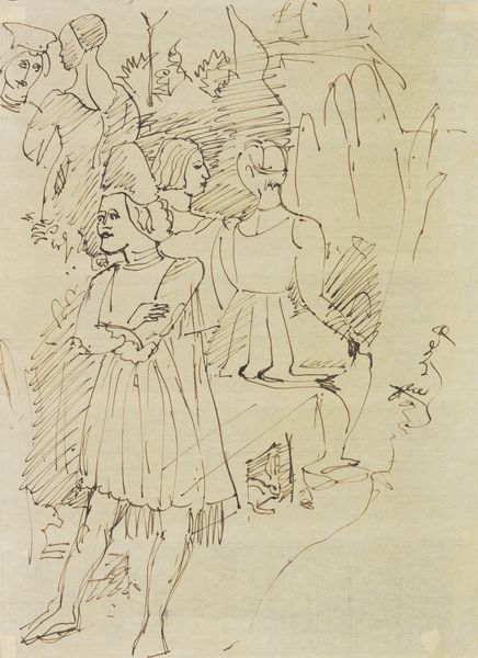 Here we see Henry Darger's '73 At Jennie Richee Escape by Their Help,' an undated watercolor, pencil, and collage work on paper. The work teems with a pale green landscape where a troupe of young girls engages with humanoid figures of ambiguous intent. Darger employs a composition that disrupts conventional perspective. The figures appear both flat and strangely dimensional, challenging fixed notions of space. Note the contrast between the delicate watercolor washes and the bold, graphic lines that define the characters, creating a visual tension. The tension can also be seen in the juxtaposition of innocence and otherness in the depiction of childhood. The formal strategy here is to challenge the traditional notions of innocence and otherness by using color, line, form, and space. This allows Darger to explore how these elements destabilize established categories of meaning. The result invites ongoing interpretation and re-interpretation.