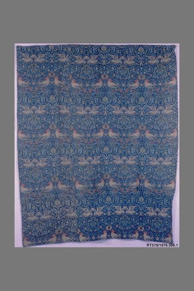 Curator: Up next is a “Chair back and seat cover”, dating to 1811. It’s textile piece, likely a mixed-media of some kind, produced by Sèguin et Cie, and it is currently held at the Metropolitan Museum of Art. Editor: My first impression is one of faded elegance. The repeated geometric patterns create a formal, almost rigid structure, yet the floral motifs soften that impression somewhat. Curator: Indeed. We observe a distinct Romanticist impulse at play here, clashing somewhat with what might seem like purely decorative choices. Consider, though, the historical context. The Napoleonic era in Europe was steeped in revivals of classical forms even while embracing emerging Romantic sensibilities. Editor: So the symmetry and the clear visual division of the fabric are the Neoclassical elements. I notice the alternation of the lilac and another floral, what appears to be a stylized poppy, within their respective oval and circular cartouches. The pattern invites scrutiny but offers little visual variation overall. Curator: Perhaps variation wasn’t the intention. Consider the use of these covers in their intended setting: providing discreet comfort and visual harmony within a well-appointed home. The somewhat muted colors and restrained pattern would’ve contributed to an atmosphere of calm domesticity. Editor: True, the colors are interesting – a restrained palette of reds and browns against a creamy background. It does evoke a sense of faded glory, something aged by time, adding depth and intrigue to an object seemingly simple. I think the repetition adds something rather striking from a design perspective. Curator: Yes, this patterned effect has resonance even today. Ultimately, it is these formal elements – the texture, the colour contrasts, and its deployment of symmetry - that give this fabric cover its subtle, lasting impact. Editor: Reflecting upon it, this textile fragment transports us back to a very specific period and a class with means, where beauty and comfort intersected in everyday objects.