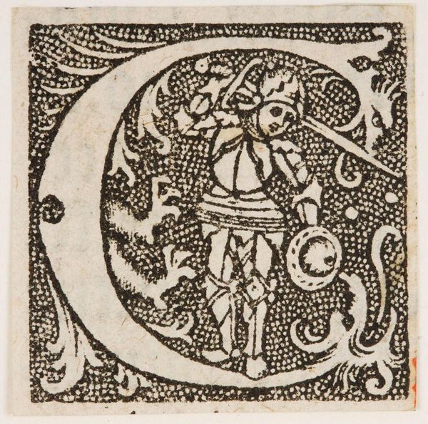 Editor: This artwork, "Capital Letter VI," is by an anonymous artist and is held at the Harvard Art Museums. I find the floral decorations really striking. What can you tell me about the symbols embedded in this artwork? Curator: This image speaks volumes about the power of the initial letter, doesn't it? Consider the cultural weight placed on beginnings, on starting a new chapter. How do you see the floral elements playing into this idea of 'initiation' or 'emergence'? Editor: I suppose they could represent growth and blossoming, new beginnings like spring? Curator: Precisely. And what of the letter "C" itself? What does it call to mind? Editor: Cycles, maybe? Closure and openness simultaneously. Curator: Yes! We see the cultural memory embedded in the familiar form, intertwined with nature's rhythm, a powerful, evocative image. Editor: I didn't think a letter could hold so much symbolism! Curator: Indeed, and such is the power of images over time.