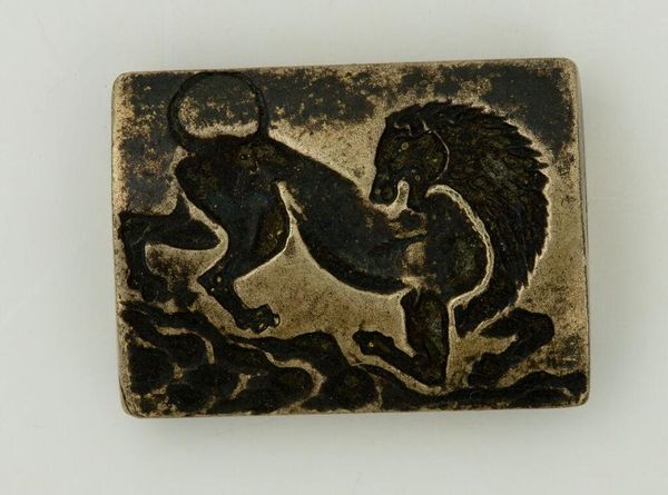 Editor: This is a reproduction of a Gold Mycenaean Bead by Emile Gilliéron or his son. It depicts a man fighting a lion. I’m struck by the detail on something so small! What do you see when you look at this piece? Curator: I see the labor involved in recreating this object and the social context of its creation. Who was consuming these reproductions, and why? Was it about accessing a lost history or participating in a specific kind of cultural capital? Editor: So, it's not just about the image, but the act of making and owning a piece like this? Curator: Precisely. The materiality and consumption habits can tell us as much as the original Mycenaean bead about the society. Editor: That’s a great point. I'll definitely think about that next time.