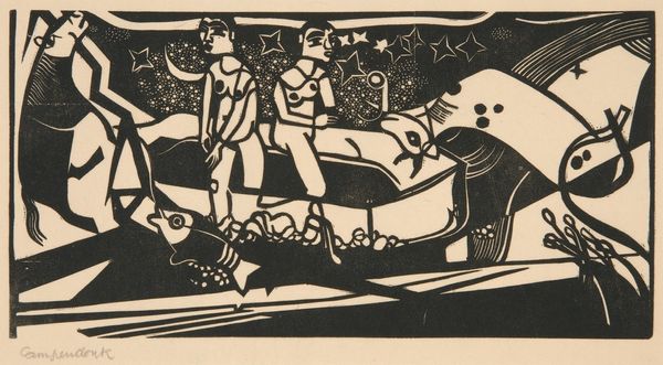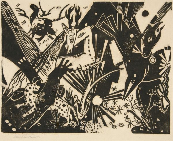 Heinrich Campendonk made this woodcut, called Landscape with Peasants and Animals, using bold, graphic marks to create a whole world. The simple palette of black and white lets the shapes and forms really pop. I always think of artmaking as a conversation, and this piece feels like a shout across a field! Look at the texture Campendonk achieves, even with just black and white. The way he carves out the figures of the peasants and animals, they almost seem to vibrate with life. The crispness of the cut gives a tactile quality, like you could run your fingers over it and feel the grooves. It reminds me a bit of the German Expressionists, like Kirchner or Heckel, who were also playing with woodcuts around the same time, pushing the limits of the medium. This work feels raw and immediate, and it's a great example of how artists can create something powerful with very simple means. It just goes to show that art is about more than just technique – it's about vision, and about the courage to put that vision out into the world.