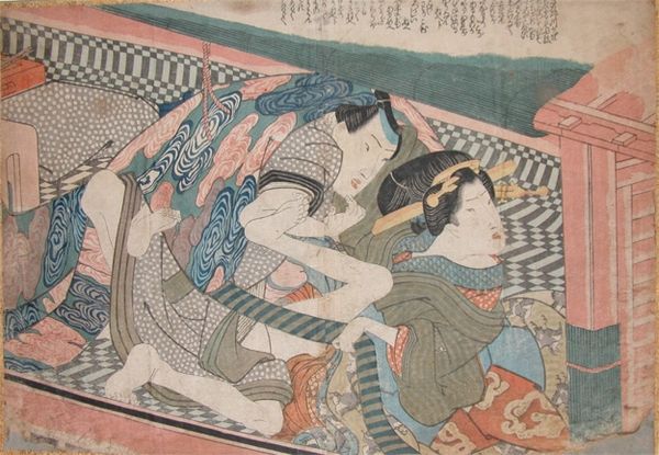 Editor: Here we have Utagawa Kunisada's "Triptych: SumÅ Wrestling Tournament." The printwork's scale is quite impressive. What's especially striking is the sheer number of figures depicted. What do you make of it? Curator: The woodblock print reveals much about Edo period entertainment and class structure. The process of carving and printing these images was a collaborative effort, involving publishers, artists, carvers, and printers. Each contributed their labor to produce these consumer objects. Editor: Consumer objects? Curator: Yes, these prints were not considered high art at the time but rather mass-produced commodities reflecting popular taste and documenting the spectacle of sumo. The choice of subject indicates a specific market and consumption pattern. Consider the economics behind commissioning, creating, and distributing such a piece. Editor: That’s a different way to consider the print, thinking about labor and consumption. Thanks!