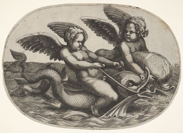 Jean François Janinet created "The Chariot of Galathee" using etching and aquatint, which is a variation of etching used to create tonal effects, printed in color. This was a relatively new technology at the time, but the image draws from the much older tradition of classical painting. Look closely, and you can see how the etcher’s line defines the composition, while the aquatint gives a watercolor-like wash. The appeal here is of luxury and ease, appropriate to its original moment. Janinet and others like him helped to meet a growing demand for accessible images. Before photography, printed images like this one were essential for circulating visual ideas. The skilled labor to produce such a high-quality print was considerable. Yet, the print medium allowed this artistry to be made widely available, reflecting the burgeoning culture of consumption in the 18th century. It is through careful attention to the materiality and method of production that we come to a richer understanding of this image.