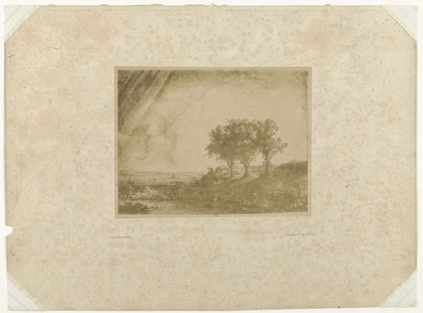 Curator: Here we see Charles-Marie Dulac's drawing, "Jesu Via et Vita Nostra / Jesu Thesaurus Fidelium," housed here at the Harvard Art Museums. Editor: It strikes me as a somber scene; the muted tones create a very contemplative mood. The barren tree dominates the landscape. Curator: Dulac, a late 19th-century artist, was deeply religious and his work often reflected his faith. The title itself, translating to "Jesus is our way and our life/Jesus, treasure of the faithful," suggests the drawing is meant to be devotional. Editor: Absolutely, and one can interpret the figures in the fields as part of the endless cycle of labor and faith during the period. It seems they're toiling the fields under the watchful eye of an almost skeletal tree. What does that communicate? Curator: Perhaps a visual reminder of the connection between earthly toil and spiritual reward, a common theme within Christian iconography and social structures of the time. Editor: I agree, and considering the limited visibility and light, I can see how Dulac's work resonates with broader narratives of hardship and hope within religious experience. Curator: Thank you for sharing your thoughts. It is always beneficial to reconsider art and history with different points of view. Editor: Indeed. This exercise is a great reminder that art offers endless opportunities for insight and reflection.