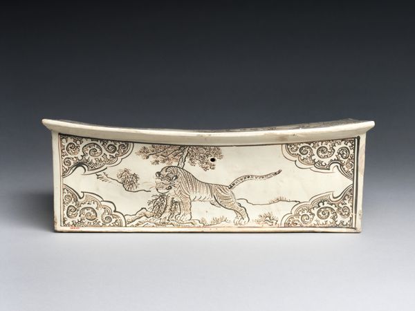 This small rectangular Plaque, made of bronze by an anonymous artist, presents a scene teeming with dynamic energy. A mythical creature, possibly a griffin, dominates the composition, its body intricately detailed with patterns suggesting both feathers and scales. The artist's use of relief creates a strong sense of depth within the limited space. Notice how the forms project outwards, catching light and shadow to articulate the complex textures and shapes. The griffin's pose, with its head turned back, imbues it with tension, as if caught mid-motion. This twisting of the body adds dynamism to the static medium of bronze. The plaque's composition can be viewed through a semiotic lens, where the griffin may symbolize power or protection. Its depiction within a defined border suggests control, while the highly stylized features reflect cultural codes and artistic conventions. The contrast between the creature's wildness and the plaque's structured form creates a compelling visual tension. This interplay destabilizes a fixed interpretation, inviting continuous speculation and dialogue.