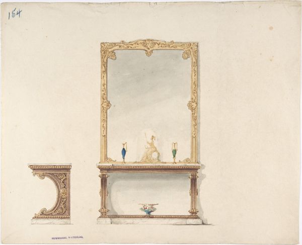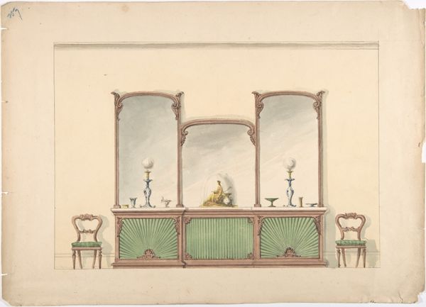 This watercolor design depicts a mirrored sideboard with four chairs, and though the artist remains anonymous, it speaks volumes about the cultural aspirations of its time. Observe the serpentine curves adorning the furniture. These echo the Rococo style, a celebration of luxury and natural forms that can be traced back to the courts of Europe. The mirror, reflecting and doubling the display of wealth, enhances this effect. Note the objects placed carefully on the shelves – vases, bowls, and a sculpture under glass, each a symbol of taste and refinement. The use of symmetry and balance evokes classical ideals, yet infused with the dynamism of the Rococo. This interplay mirrors a broader cultural tension, as societies grappled with tradition and progress. The serpent motif, for instance, is an ancient symbol of transformation and rebirth, a cyclical force that reminds us that styles and symbols never truly disappear; they merely transform, resurfacing in new contexts to enchant and provoke.