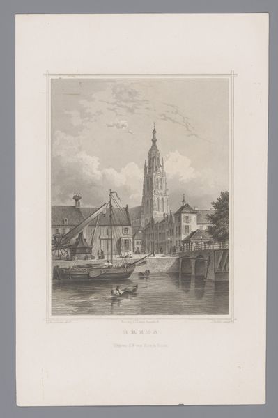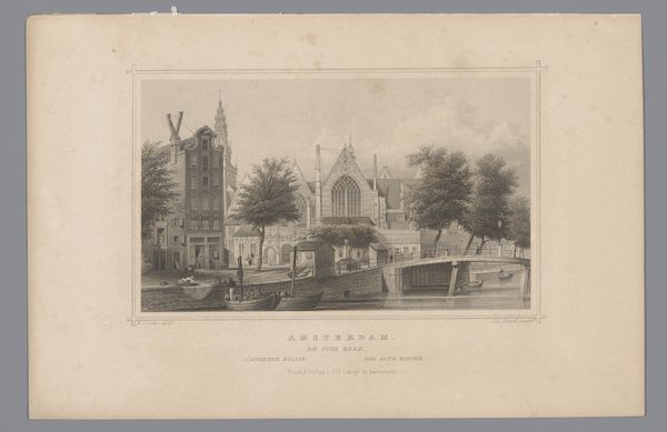 This print by Louis Thümling captures the Mozes en Aäronkerk as seen from Leprozengracht. It is a study in geometric composition, where the church’s symmetrical facade is anchored by the sturdy arches of the bridge below. The building's classical lines and the reflections on the water's surface create a serene, almost dreamlike atmosphere. Thümling organizes the composition with a clear structure. Vertical lines of the church's twin towers and the buildings flanking it contrast with the horizontal emphasis of the bridge and the water. The textures and details of the architecture are rendered with precision, contrasting the softer, fluid reflections in the canal. This interplay between solidity and fluidity, precision and reflection, provides a way of looking at the urban landscape. The print invites us to consider how these carefully balanced elements work together to create a harmonious image.