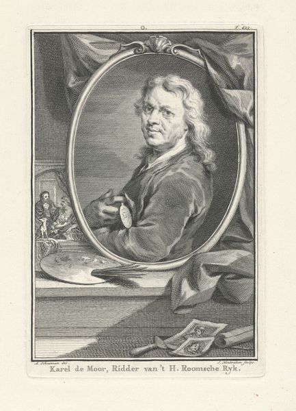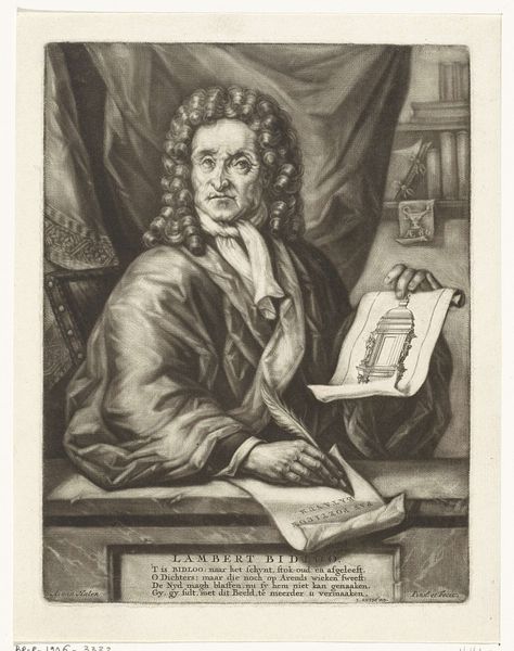 This is a portrait of Jakob Campo Weyerman, made by Johannes de Groot II, likely in the mid-18th century, using etching. In this intaglio printmaking technique, the artist would have used a sharp tool to draw into a wax-coated metal plate, before submerging it in acid. The acid bites into the exposed lines, leaving an image that can then be inked and printed. Look closely, and you can see the fine, precise lines that define Weyerman’s features, his elaborate wig, and the folds of his clothing. The very nature of etching, with its reliance on carefully controlled mark-making, speaks to the sitter’s social standing. Weyerman was a writer and art dealer, part of a burgeoning middle class that valued skill, precision, and the intellectual rigor of the Enlightenment. The relative ease of production means prints like these could be more widely disseminated than a unique painting, and a growing consumer market arose to meet them. By understanding the material and the making, we can appreciate how this modest print reflects the social and economic shifts of its time.