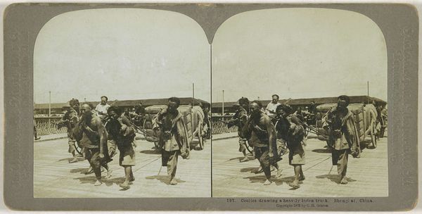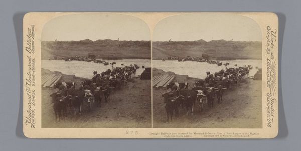 This stereoscopic photograph by Ferrier Père-Fils et Soulier captures a camp on the shores of Lake Timsah in Egypt. Dominating the scene are the tents, symbols of temporary human presence amidst the vast landscape, and the camels, ancient symbols of endurance, commerce, and the nomadic spirit intrinsic to this region. These motifs evoke images across time, from biblical scenes of nomadic tribes to Renaissance depictions of exotic caravans. The tent, a simple shelter, echoes in the canopies of Renaissance paintings, offering refuge to holy figures. The camel, burdened yet unbowed, mirrors the steeds in battle scenes, carrying warriors and their destinies. Consider how these symbols have traversed history, evolving in meaning yet rooted in our collective memory. The image engages us on a primal level, stirring subconscious associations of journeys, shelter, and the relentless passage of time. It reminds us that even in the face of progress, ancient symbols endure, resurfacing in new contexts.