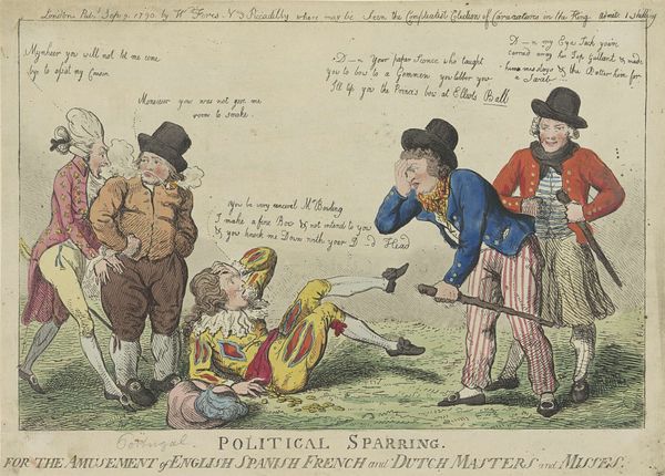 Charles Williams created this hand-colored etching in 1808. It’s a piece of political satire now held in the Rijksmuseum. The print depicts Napoleon, here called "Doctor Boney," forcing European monarchs to sit on chamber pots labeled with their countries. This crude scene visually expresses the political dominance Napoleon exerted over much of Europe at the time. On the right, John Bull, representing Britain, threatens Napoleon. With his fists clenched, he holds a bag of gold, symbolising Britain's financial power. The print reflects the intense political rivalry between Britain and France during the Napoleonic era. Satirical prints like these were a popular form of social and political commentary in Britain. They circulated widely and played a significant role in shaping public opinion. To fully understand this image, one might research the political alliances and conflicts of the Napoleonic Wars, along with the role of caricature in British political culture.