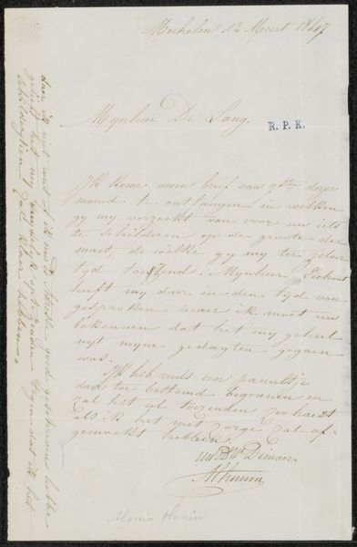 This is a letter penned by Johannes Hooyman, its very form and script laden with symbols of communication across time. Consider the act of writing itself, a technology of memory, enabling ideas to transcend immediate presence. The handwritten script, with its unique flourishes, reveals the personal touch of the author, a direct link to his thoughts and emotions. This intimate form stands in stark contrast to the printed word, impersonal and mass-produced. Here, the handwriting becomes a symbol of authenticity, an effort to convey not just information, but also the writer's presence. The very act of letter-writing reminds us of similar gestures across history, from ancient scrolls to modern emails, each adapting to its time yet serving the same fundamental human need to connect and communicate. The letter, with its encoded messages, acts as a vessel carrying emotions and intentions, much like an offering or a plea across the vast ocean of time. It encapsulates the eternal human desire to bridge distances and leave a lasting trace.