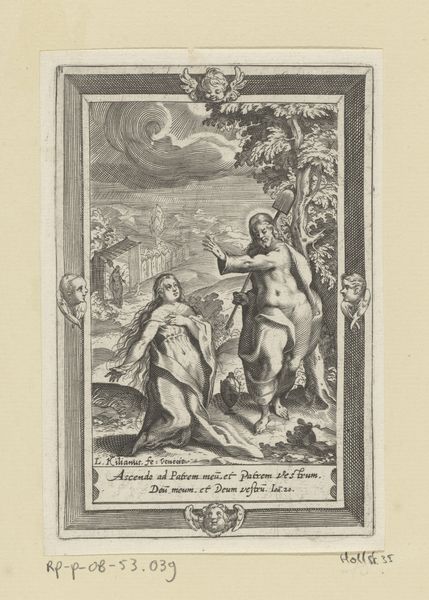 Jacob Ernst Marcus created this work, Abraham's Kindschheid, using etching. Notice the composition is split into two distinct halves, the left dominated by youthful curiosity and idolatry, and the right defined by aged wisdom. The young Abraham points towards the crescent moon, a symbol, perhaps, of nascent faith, while an idol lies discarded at his feet. The artist's lines delineate Abraham's youthful figure, contrasting with the intricate hatching that models the thoughtful visage of the elder figure seated to the right, possibly his father Terah. This division may function as a semiotic dichotomy. The artwork destabilizes the traditional narrative of religious awakening. The formal choices, such as the detailed rendering of the idol versus the suggestive lines of the crescent moon, invite us to question the conventional opposition between idolatry and monotheism. The detailed etching technique used here is a key component of its form, suggesting a world in transition, where clarity and ambiguity coexist, reflecting the complexities inherent in the journey of faith and understanding.