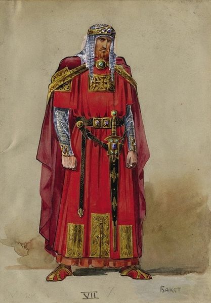 Curator: Josef Kriehuber crafted this portrayal of Ferdinand I in 1828 using lithography. It's striking, isn't it? What's your first impression? Editor: He looks a bit…deflated, somehow? Regal costume and all, but the posture suggests weary resignation more than commanding authority. Like a medieval CEO forced to wear the office uniform on casual Friday. Curator: Kriehuber, you see, was working in a very specific cultural moment, during a time of great change in Austria. Think about the rising tide of nationalism and liberalism; art played a role in visualizing power. The details like the crown and scepter were potent symbols. Editor: Oh, absolutely. The semiotics are screaming “empire.” But the artistry itself…it feels almost rote, like checking off boxes on a "how to depict majesty" form. Even the colors seem faded, symbolic of a power on the wane, perhaps? The rigid armor contrasts humorously with his rather gentle face. Curator: It's lithography, so we’re seeing a print intended for wide distribution. Consider that context: this image served to disseminate and reinforce imperial authority across a broad populace. It wasn’t about nuanced character study, but about projecting an image of the emperor. Editor: I get that. Public relations by pigment. But what gets me are the almost cartoonish elements: the stumpy little crown, those ridiculously padded leggings… Were people genuinely inspired, or were they rolling their eyes while still dutifully bowing? Curator: Historians tend to see these depictions as reflecting the Hapsburg’s ongoing efforts to legitimize their rule in the face of changing social structures and ideologies. It wasn't always a smooth process. Editor: So it’s more of a fascinating political artifact than an arresting artistic achievement, perhaps. It leaves me pondering the theater of power – how fragile and absurd it can all seem under a good light, or a dodgy lithograph. Curator: Precisely. And hopefully, it sparks some reflection on how visual imagery continues to shape and influence our perception of authority today. Editor: Definitely food for thought. Power dressing through the ages - sometimes effective, sometimes unintentionally hilarious, always a story waiting to be unpacked.