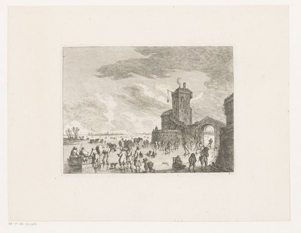 Mathias de Sallieth made this print in 1786, showing the Prince and Princess of Orange visiting the Westcappelse Dike. It speaks to the power structures of the Dutch Republic at the time. The image constructs meaning through its depiction of social hierarchy. On one side, the clearly wealthy royals are shown in finery inspecting the dike, while on the other, laborers are pictured working on it. The setting, a vital piece of infrastructure, symbolizes the ongoing struggle against the sea that defined the Netherlands. This visit can be seen as a political act, reinforcing the legitimacy and concern of the ruling House of Orange with the welfare of its people. The print subtly comments on the social contract, reminding us of the reciprocal obligations between rulers and the ruled. Looking at the context, research into pamphlets, newspapers, and government records of the period can help us understand the nuances of the relationship between the Dutch royalty and its citizens. The meaning of such art remains contingent on this type of social and institutional background.